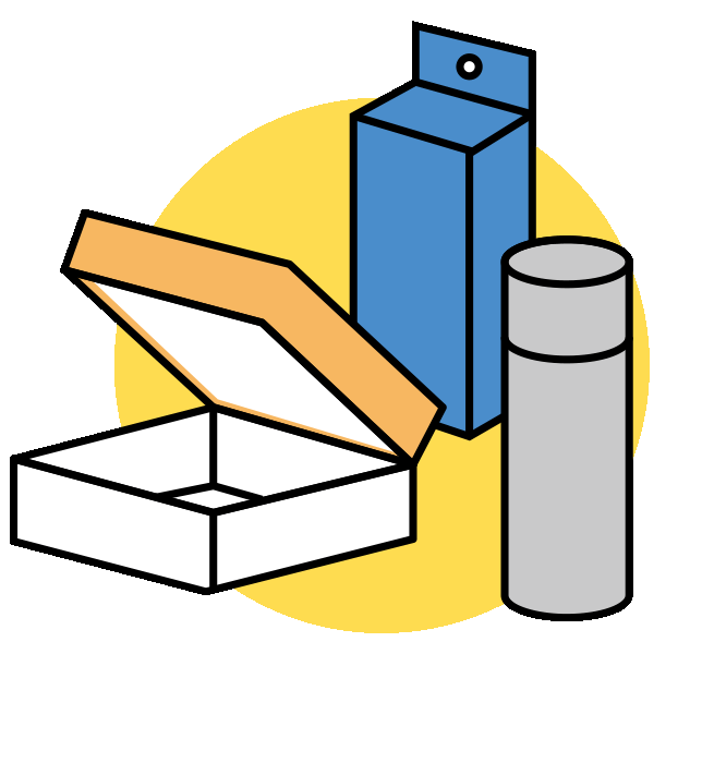 食品、化粧品、雑貨、玩具、工業製品のパッケージなど